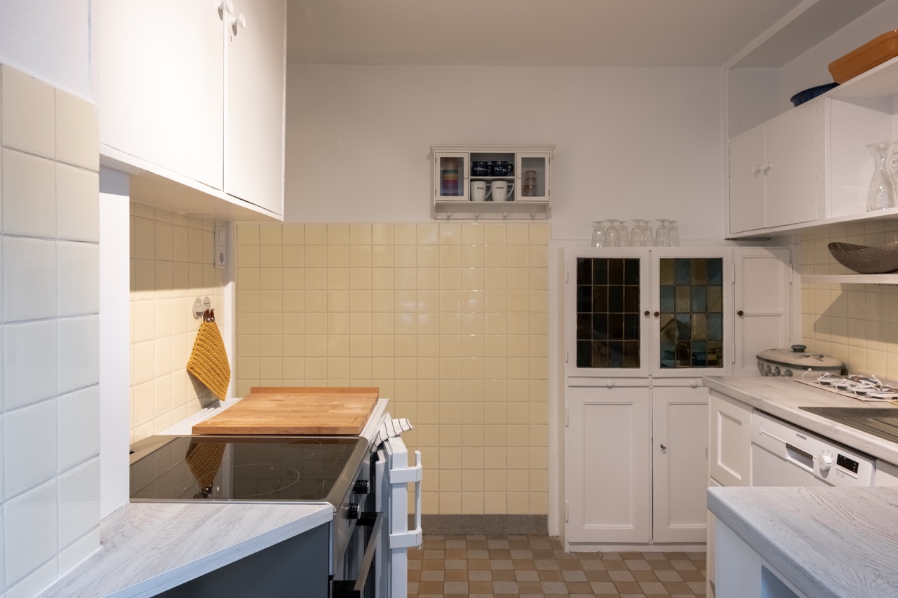 Die „Nostalgie-Küche“: Wir haben die charmante Original-Küche aus den 50er Jahren bewusst erhalten und mit modernen Geräten (Induktionsherd, Spülmaschine etc.) für Sie ergänzt.