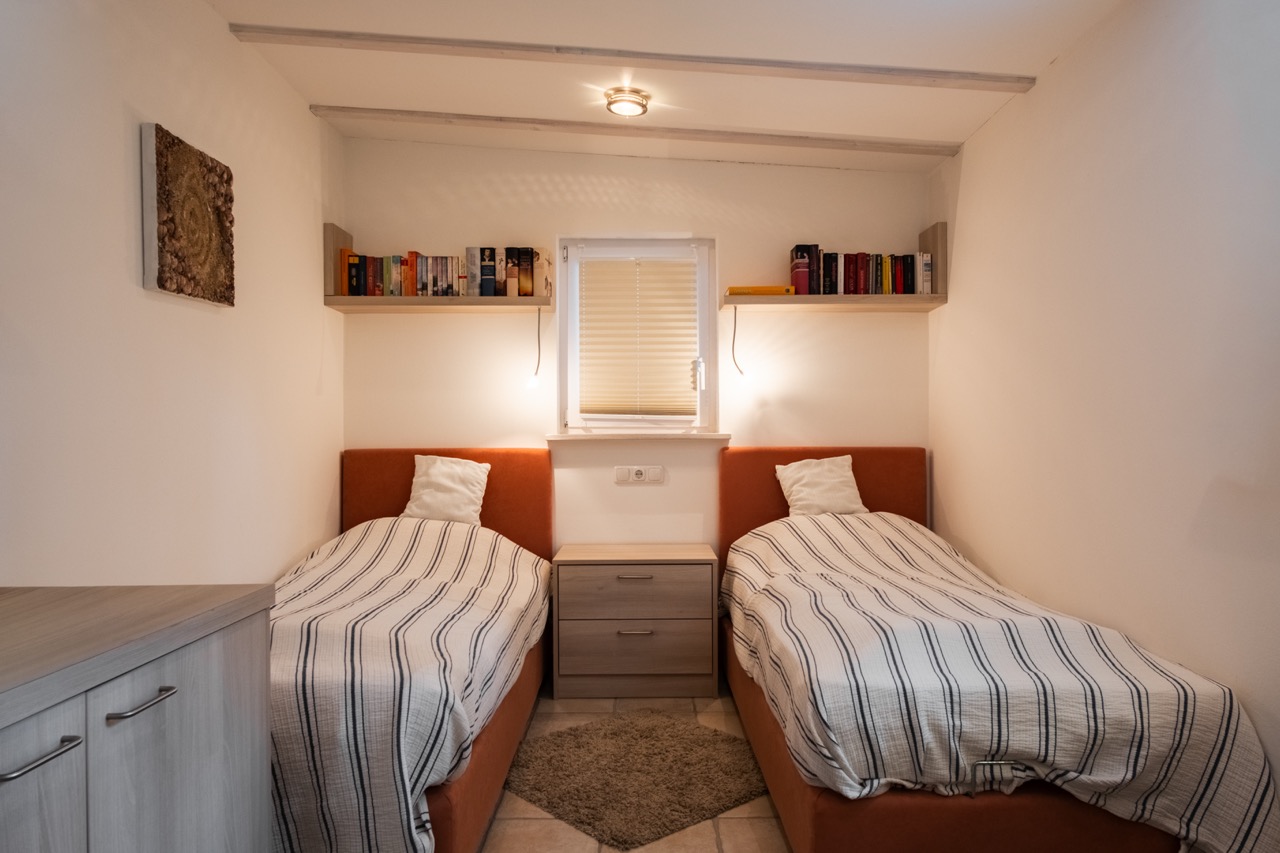 Gästehaus: Wenn sie mit mehr 6 Personen Urlaub machen möchten, steht ihnen optional auch das kleine Gästehaus direkt neben dem Haus mit zwei Einzelbetten und eigenem Bad zur Verfügung.